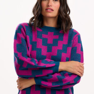 Dieser Jacquard-Strickpullover besteht aus einer Materialmischung und verfügt über ein eingewebtes Muster im klassischen Design. Das Strickgewebe hat eine weiche Oberfläche und ist für den täglichen Gebrauch in unterschiedlichen Alltagssituationen geeignet. Weite Ärmel mit Rippbündchen sorgen für eine strukturierte Form und unterstützen eine bequeme Passform.