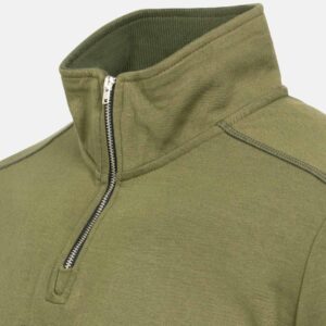 Dieser Pullover ist ein langärmeliges Kleidungsstück für den täglichen Gebrauch. Er verfügt über einen Stehkragen mit halbem Reißverschluss, der verschiedene Trageoptionen ermöglicht. Die schmale Passform sorgt für einen körpernahen Sitz und eine klare Silhouette. Rippdetails sind in die Verarbeitung integriert und unterstützen die Form des Kleidungsstücks.