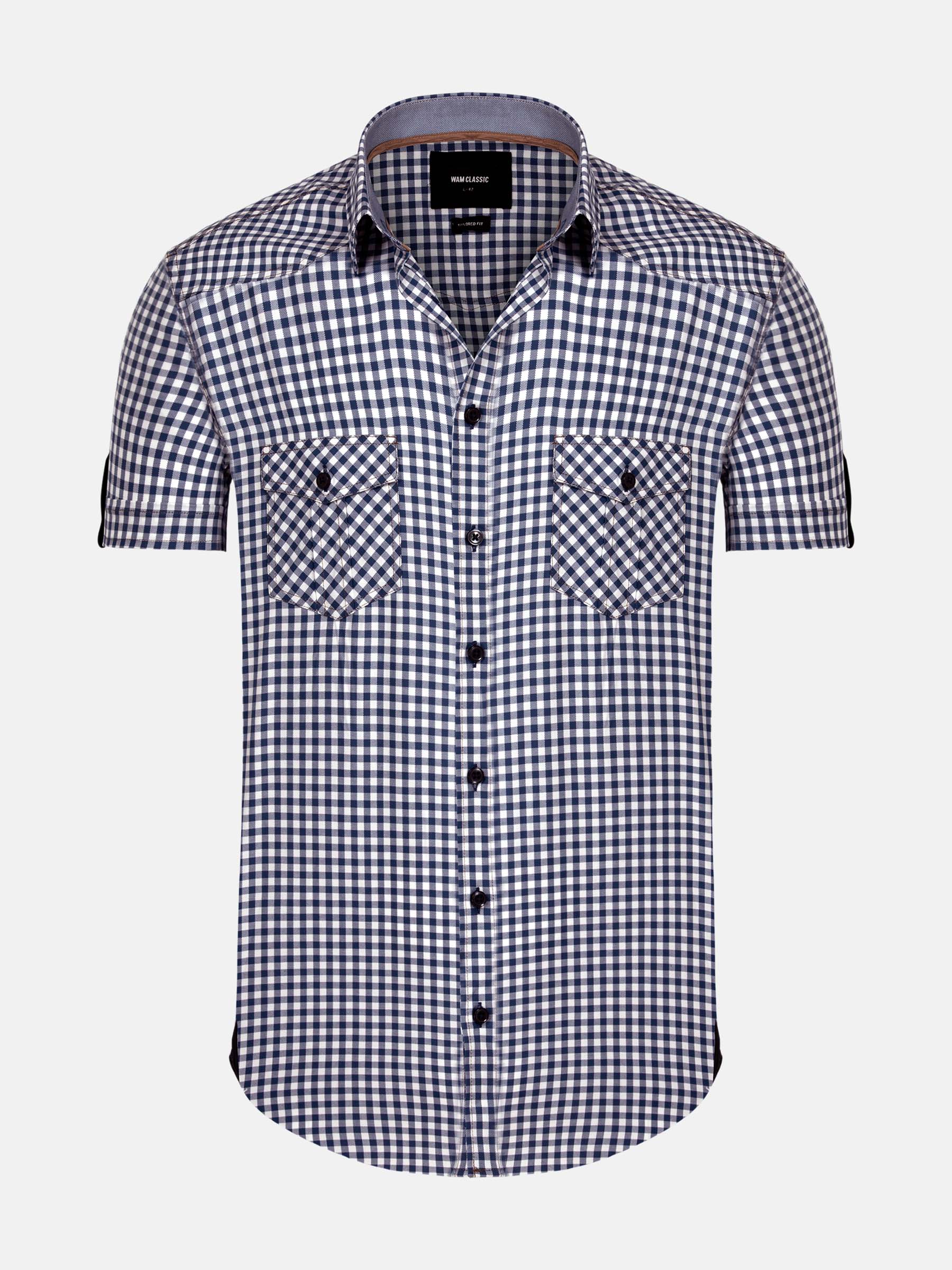 Dieses Hemd ist ein langärmeliges Kleidungsstück für den täglichen und gepflegten Gebrauch. Es ist mit einem Karomuster gestaltet, das gleichmäßig auf dem Stoff angeordnet ist und eine klassische Optik bietet. Die körpernahe Passform sorgt für einen klaren Sitz und eine strukturierte Silhouette, ohne die Bewegungsfreiheit einzuschränken.
