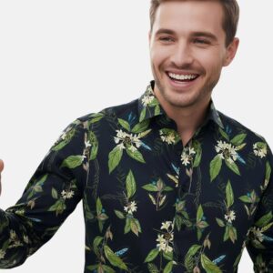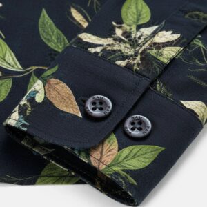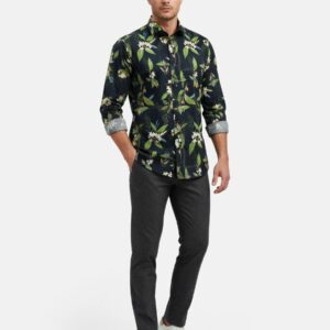 Dieses Hemd ist ein langärmeliges Kleidungsstück für den täglichen und gepflegten Gebrauch. Es ist mit einem floralen Muster versehen, das gleichmäßig auf dem Stoff verteilt ist und eine strukturierte Optik bietet. Der Schnitt ist auf eine klare Silhouette ausgelegt und sorgt für einen gleichmäßigen Sitz.