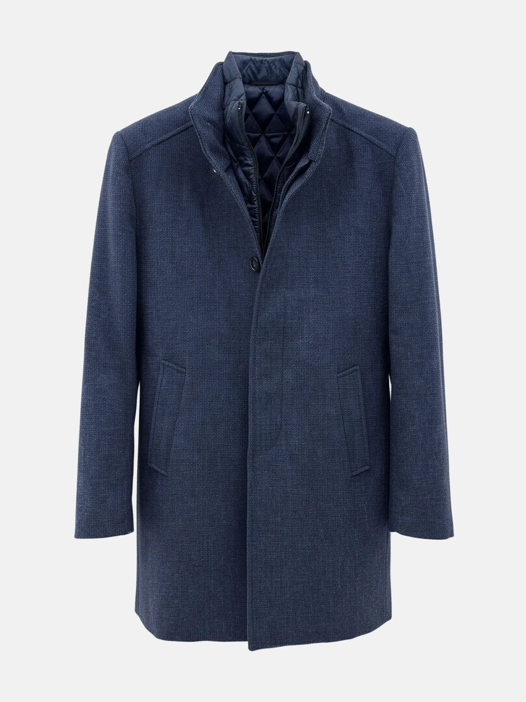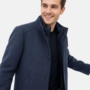 Das Material ist für den regelmäßigen Gebrauch ausgelegt und unterstützt einen gleichmäßigen Sitz bei normalem Tragen. Die Verarbeitung ist stabil und auf Formbeständigkeit ausgerichtet. Durch die Innenkonstruktion eignet sich der Mantel für wechselnde Temperaturen.